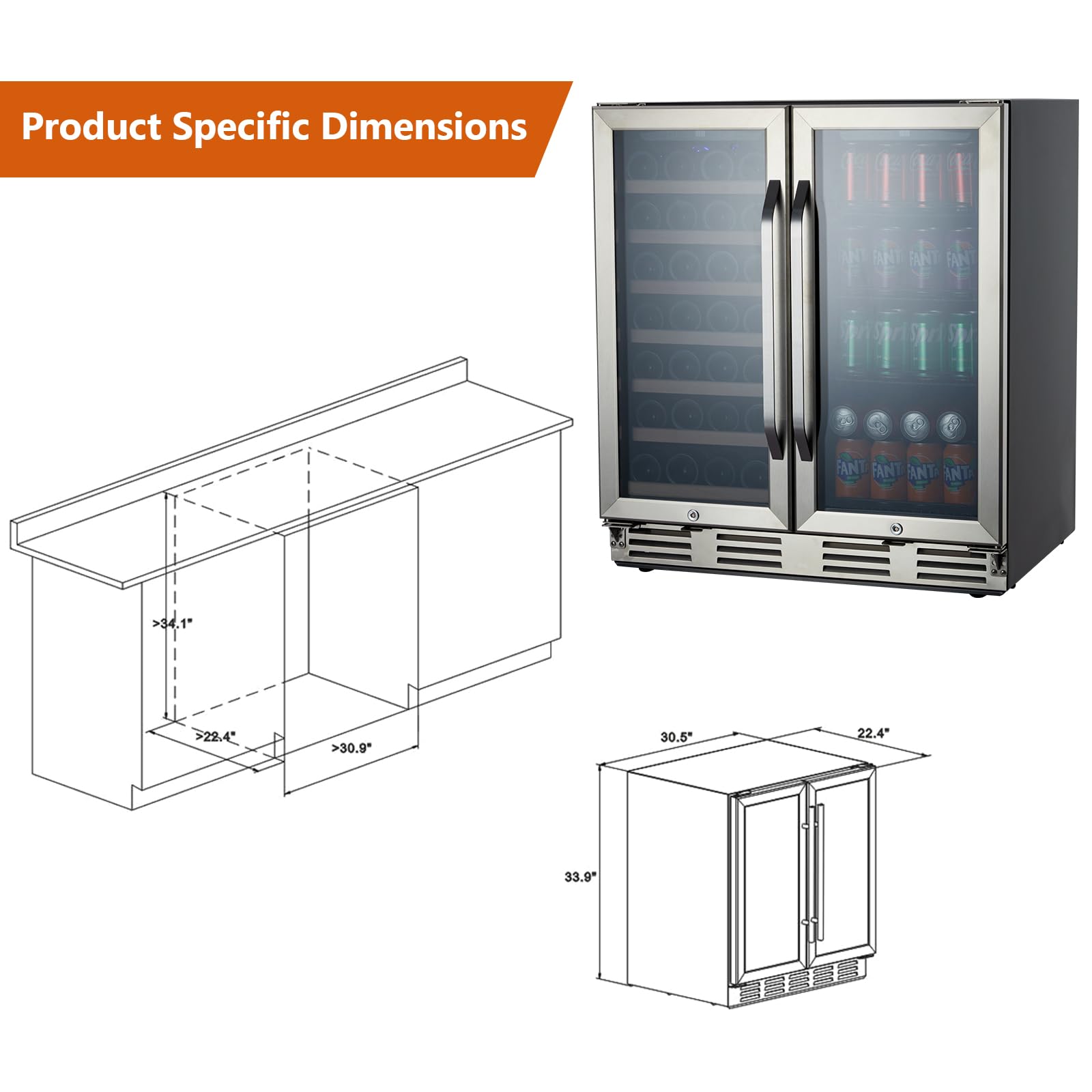 Garvee 30 Inch Wine and Beverage Refrigerator Dual Zone with Digital Temperature Control Safety Locks, Hold 33 Bottles and 100 Cans for Kitchens Bar
