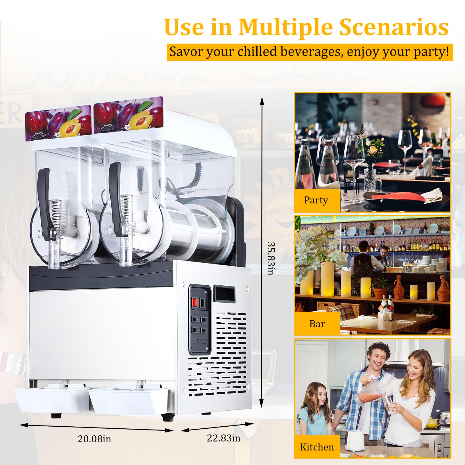 Perfect for restaurants, bars, cafes, and event venues, our Commercial Slushy Machine is designed to meet and exceed your frozen beverage demands. With its impressive 30L capacity and versatility, you'll be able to serve a wide variety of delicious frozen treats simultaneously, keeping lines short and profits high!