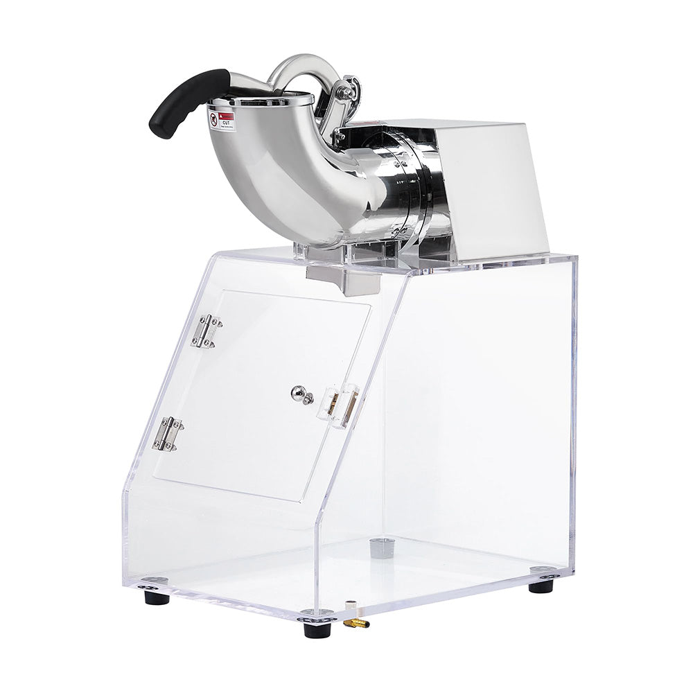 Our professional-grade ice crusher shaver is designed to meet the demands of commercial use while being perfect for large events and home enthusiasts. With its powerful motor, dual stainless-steel blades, and large capacity, you can create mountains of fluffy snow in minutes, ensuring your customers or guests are always satisfied.