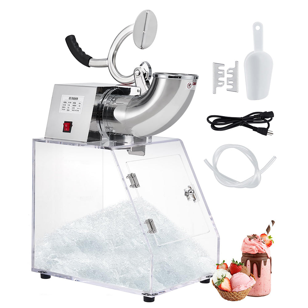 Garvee Commercial Ice Crusher Shaver Snow Cone Maker, Stainless Steel Electric Snow Cone Machine with Dual Blades, Acrylic Box, Safety On/Off Switch, Shaved Ice Machine for Home, Restaurants, Bars