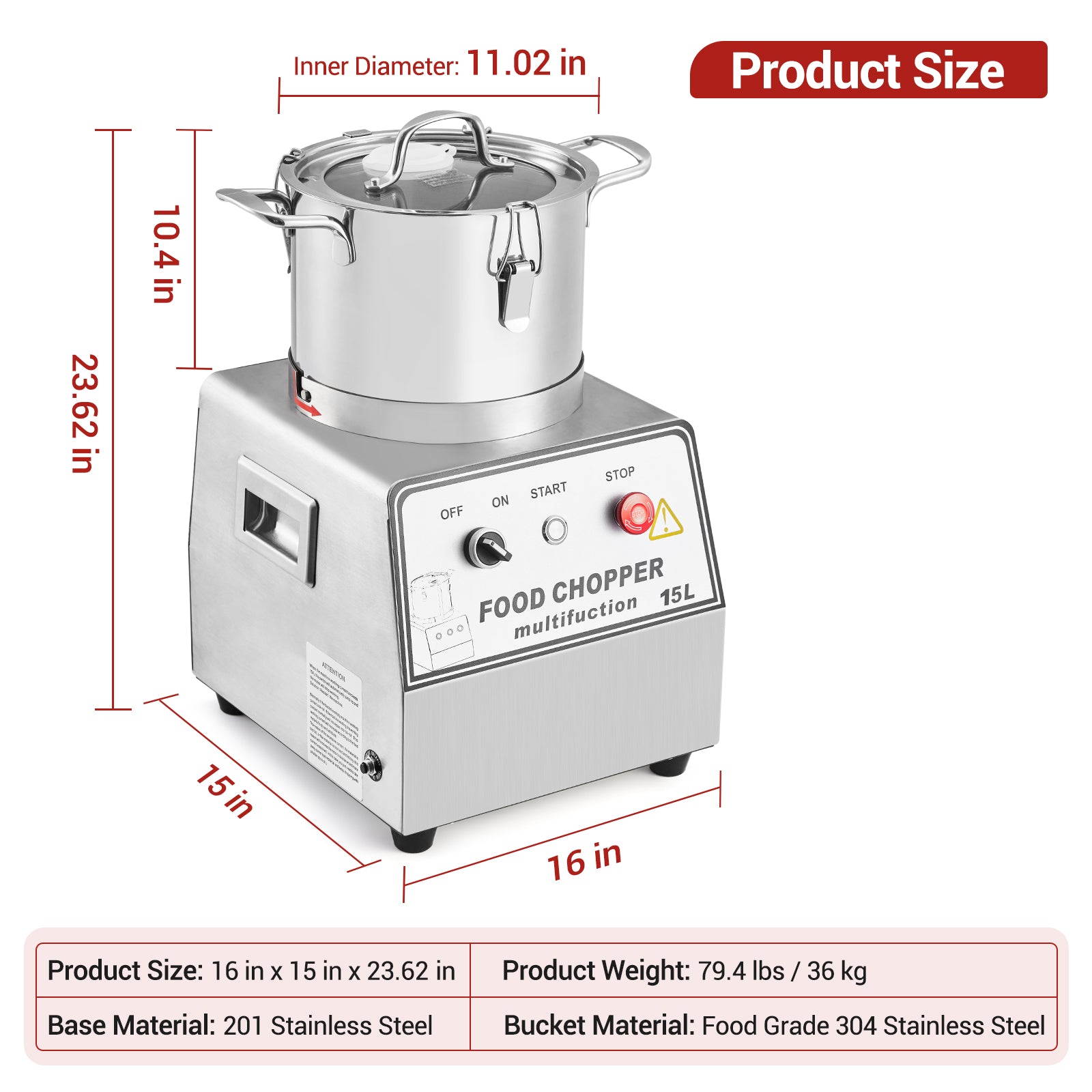 Garvee 1400W Commercial Food Processor, 63 Cup Electric Vegetable Chopper Meat Grinder, Multi-Functional Food Processor with Stainless Steel Body & Blades, Gloves, Brush, 110V