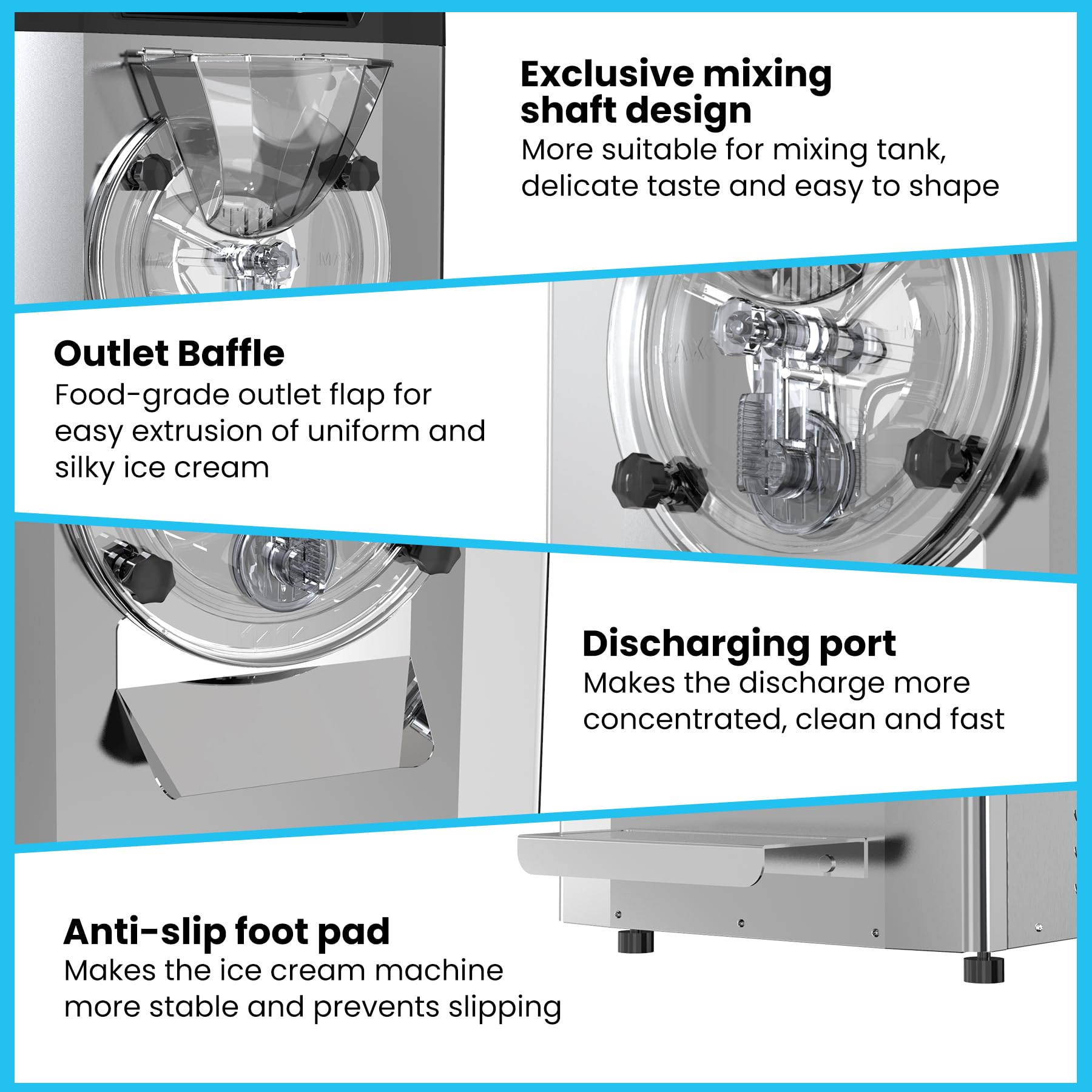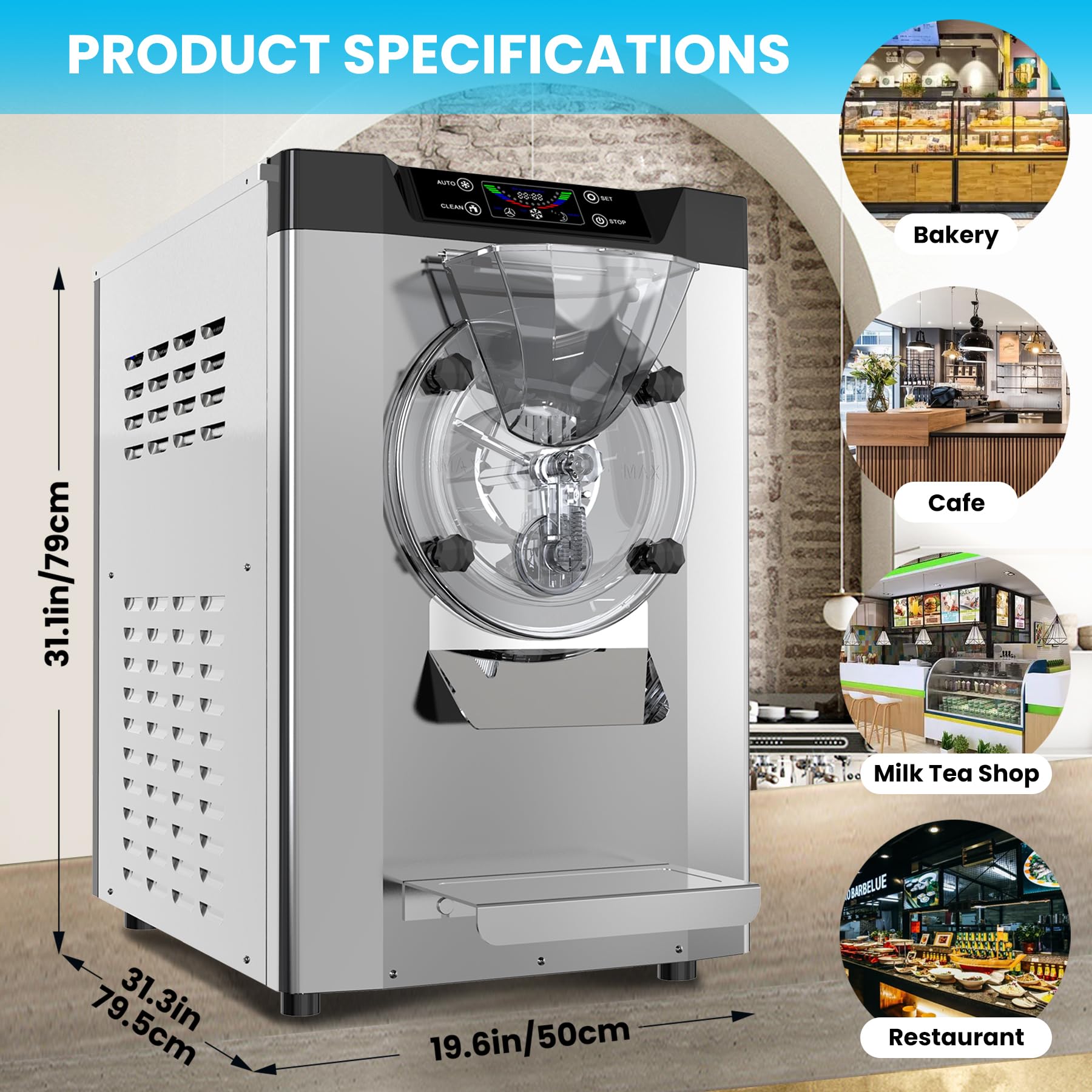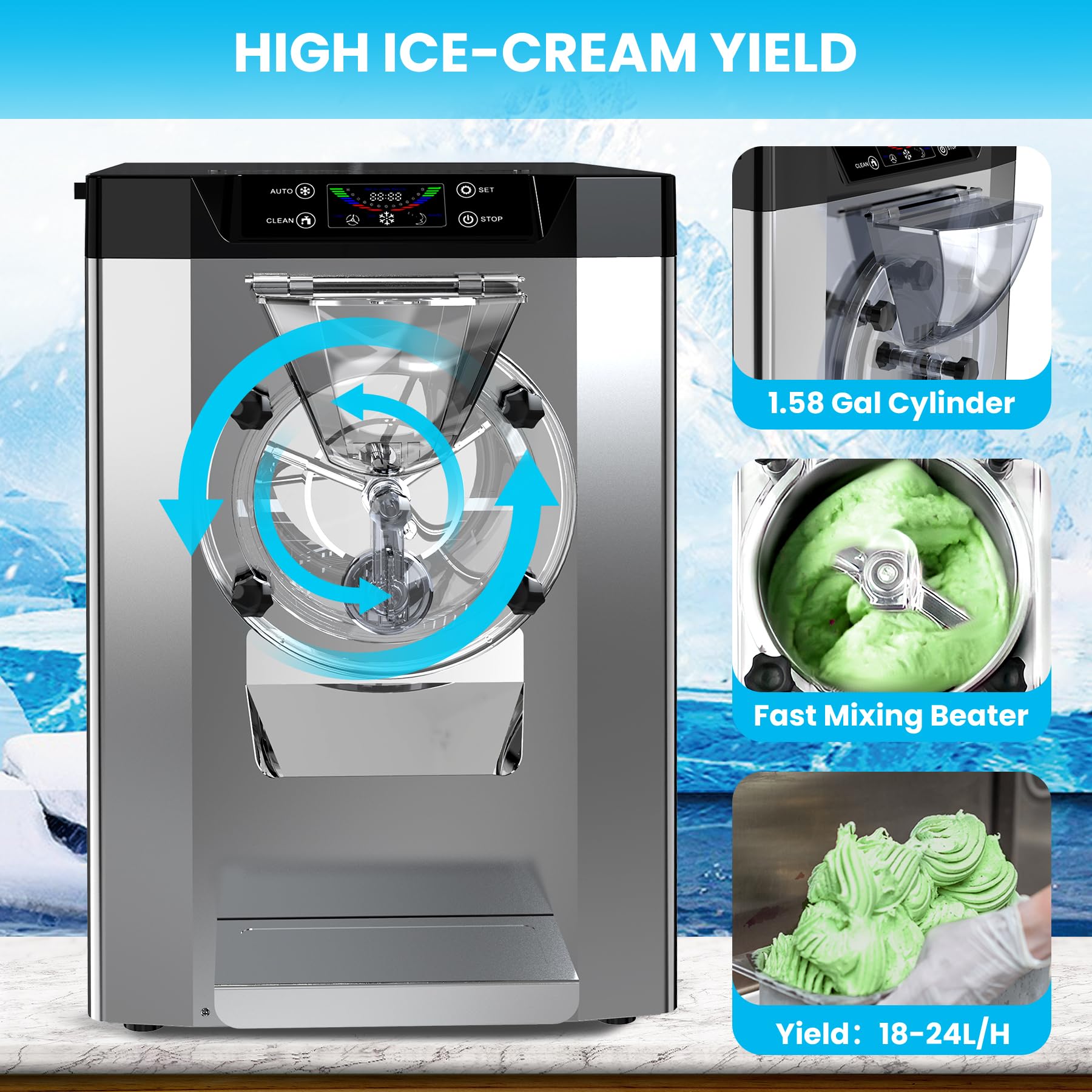 Garvee 2000W Commercial Hard Ice Cream Machine 6.3Gal/H High Output Self-Cleaning LCD Touch Screen 304 Stainless Steel for Cafes Restaurants Home