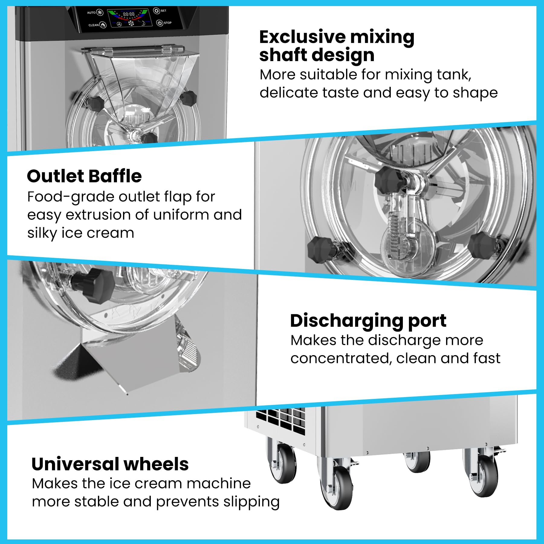 Garvee 2200W Commercial Hard Ice Cream Machine - 6.3Gal/H High Output, Self-Cleaning LCD Touch Screen for Cafes, Bubble Tea Shops & Restaurants (FDA Stainless Steel)