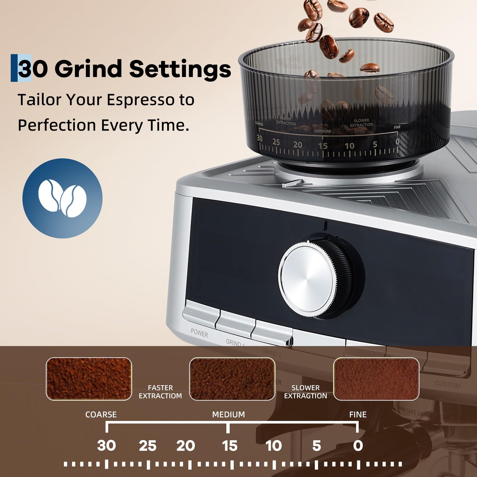 🎛️ Adjustable Grind & Shot Volume