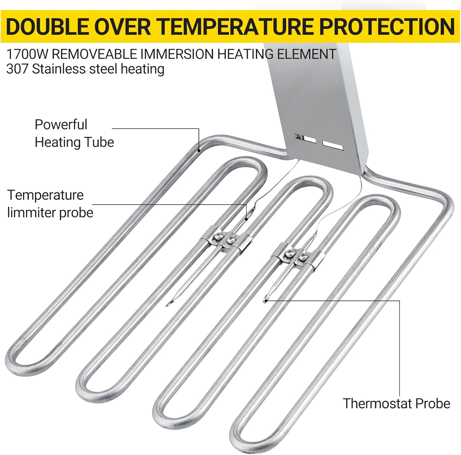 - Give you a good experience. The commercial deep fryers frying machine equipped with a powerful 1700W heating element in basin, which can help you quickly heat food