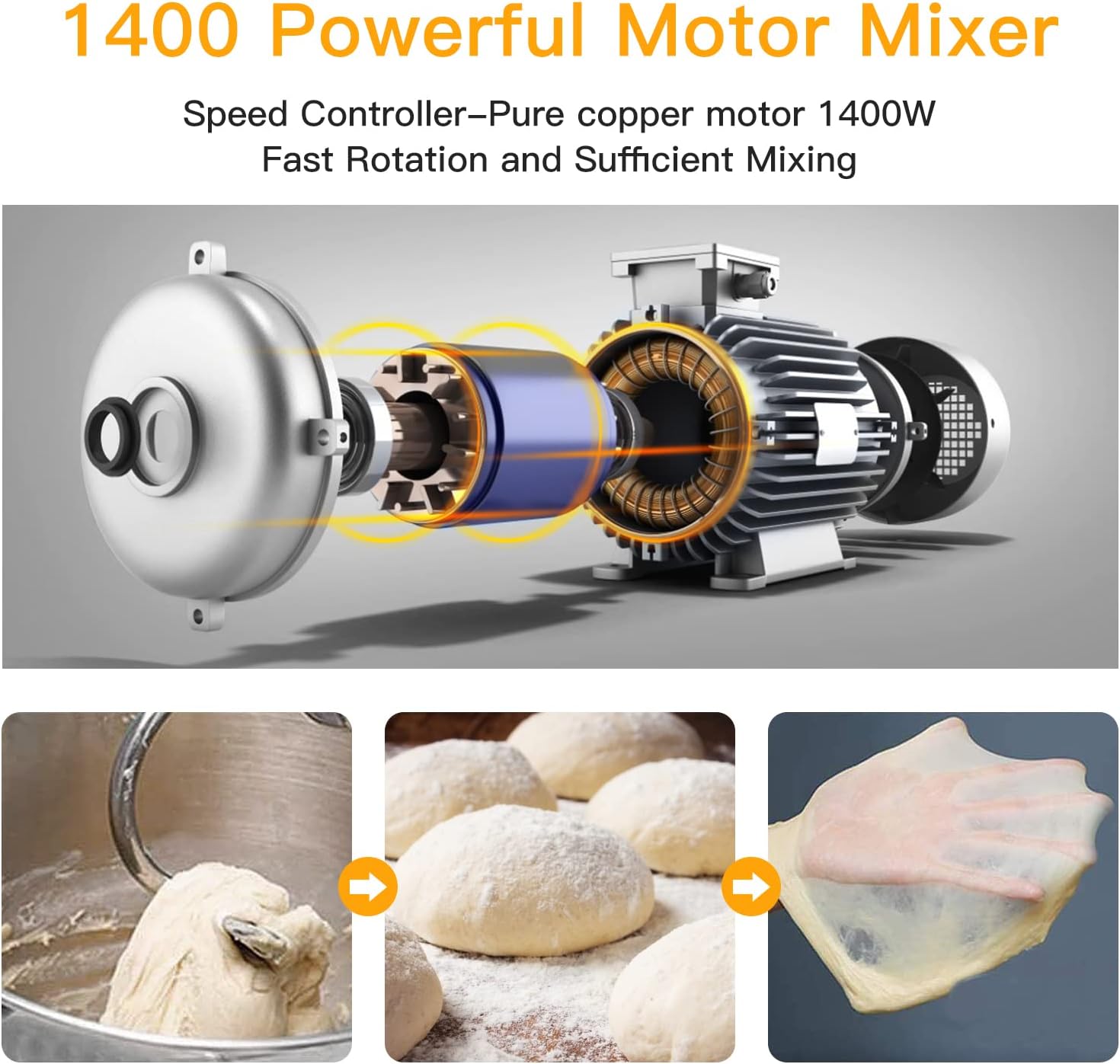 The stand mixer is stir fully 360° to mix the food, Mixing will more evenly and reduce the waste of flour or food. Make delicious more comprehensive.