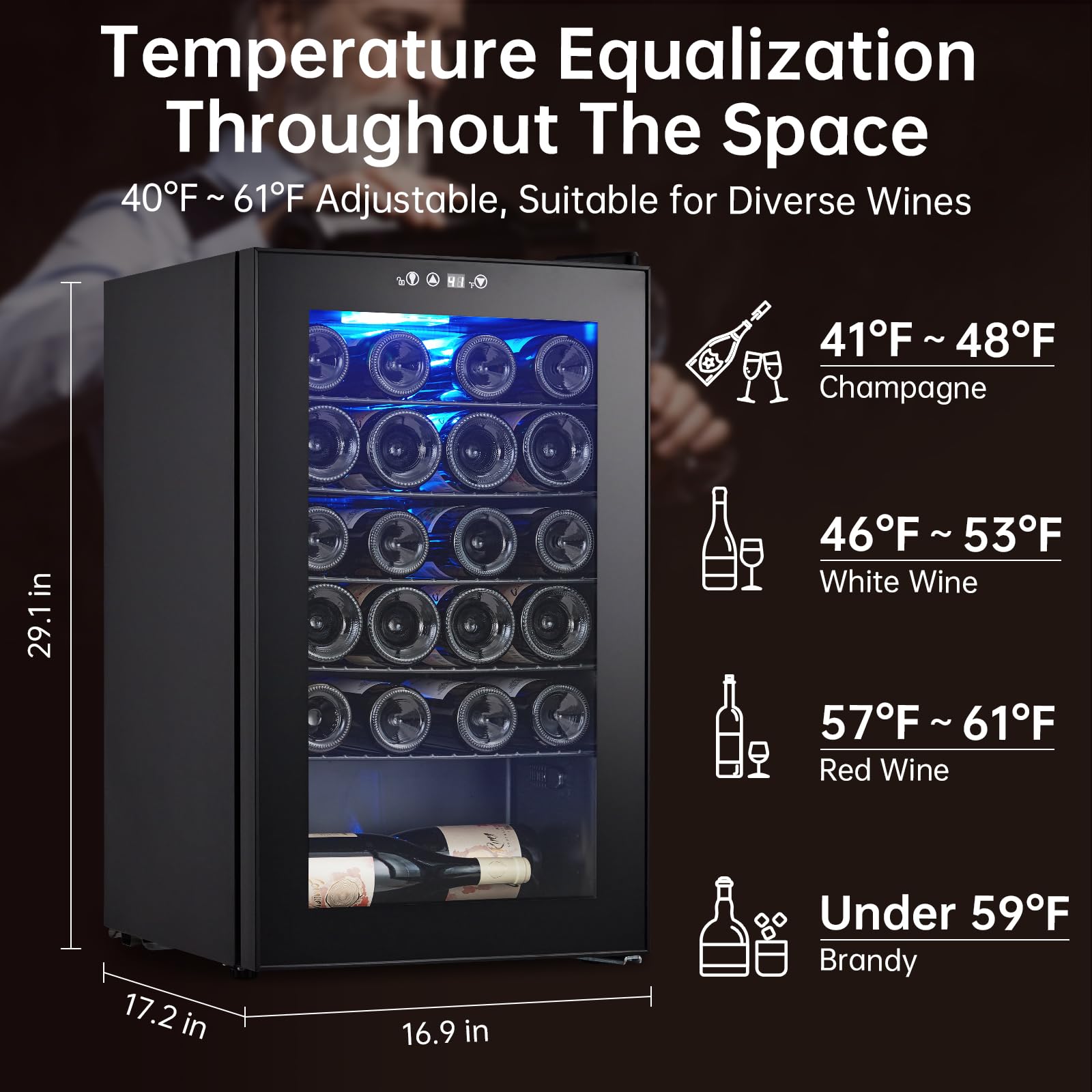 Garvee 24 Bottle Wine Fridge, Wine Cooler with 40~61°F Digital Temperature Adjustment, Freestanding Wine Refrigerator for Red, White and Champagne