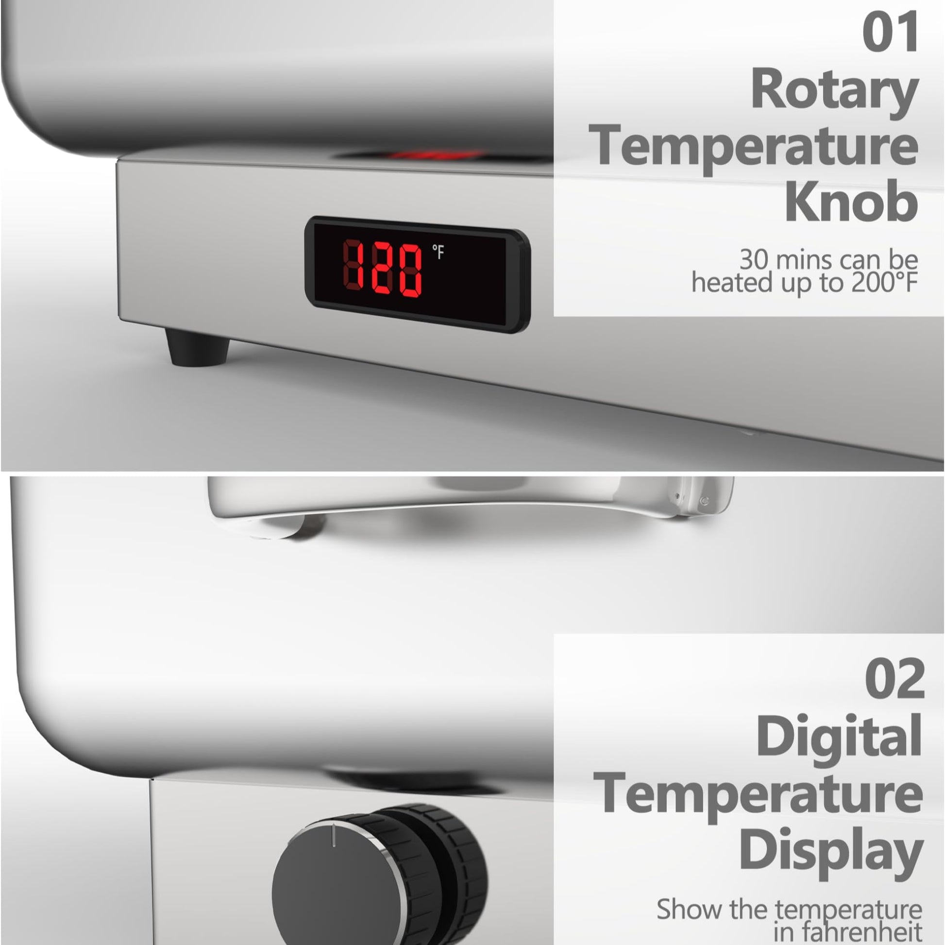 With its powerful 400W heating element and adjustable thermostat, you can maintain your dishes at the ideal temperature between 86°F and 200°F (30°C to 93°C). This ensures your food stays warm and delicious throughout your event.