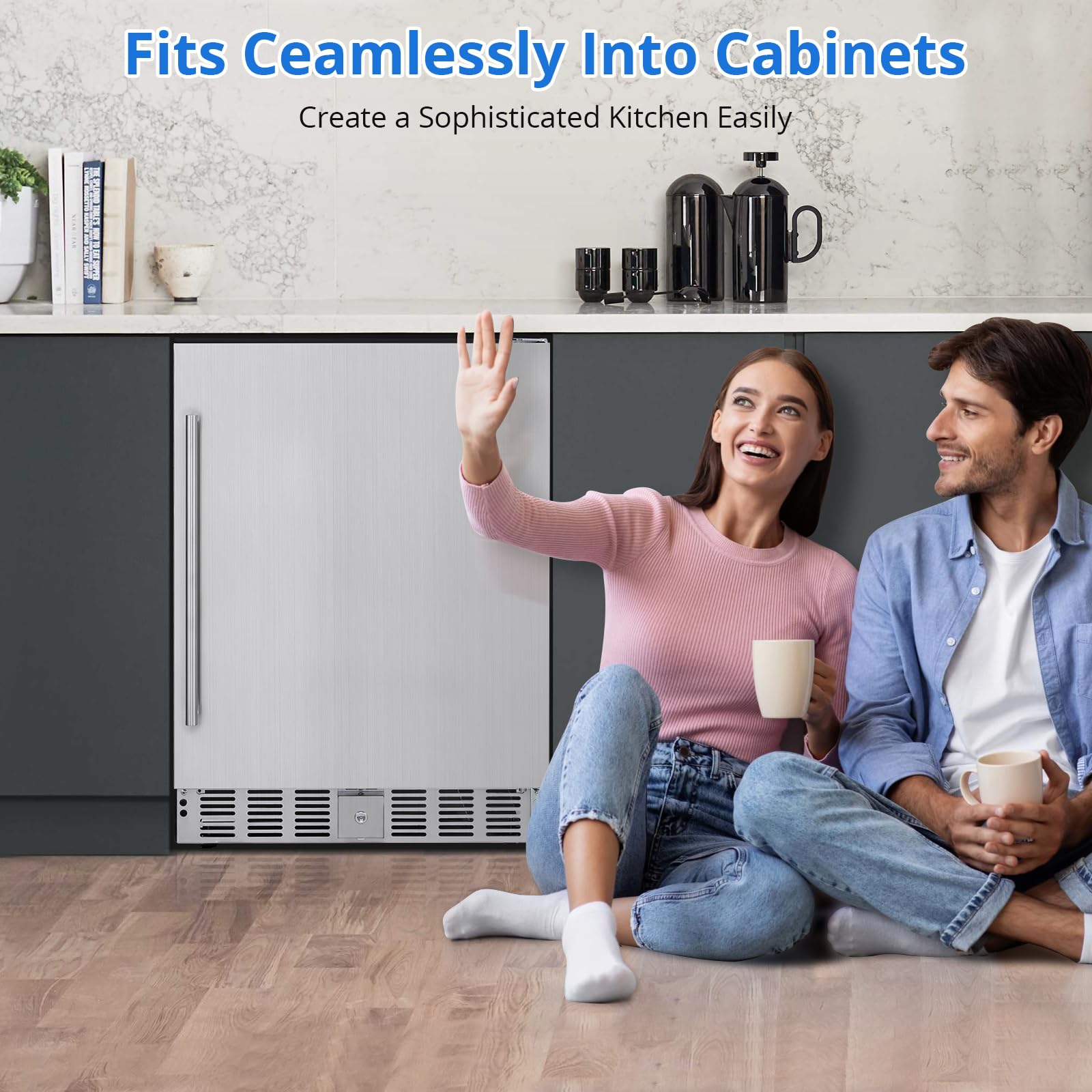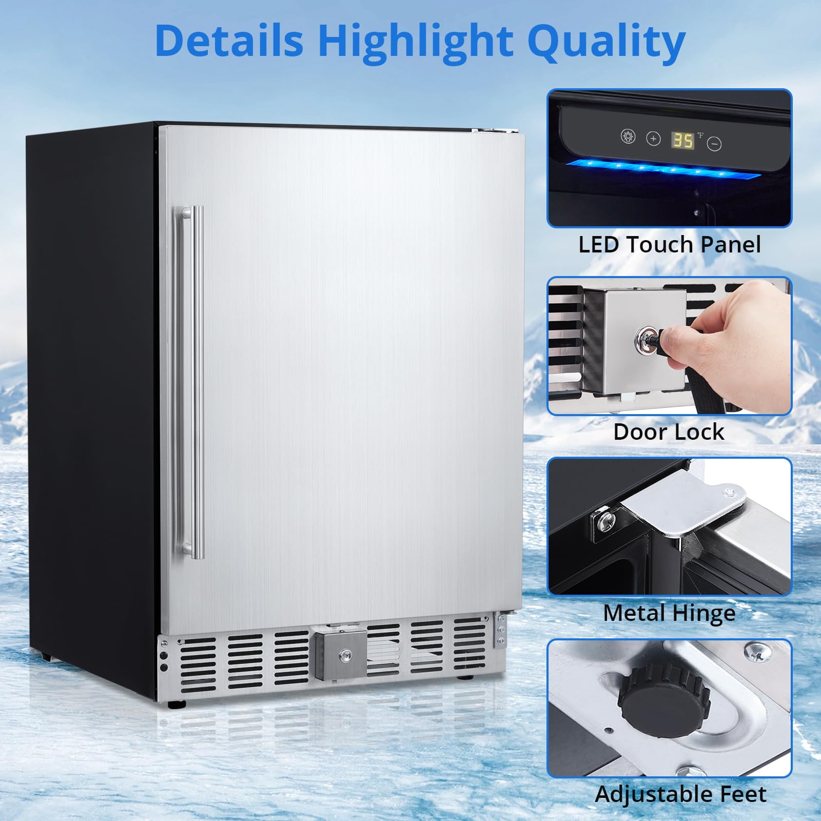 Garvee 24Inch Indoor Beverage Refrigerator Weather Resistant Stainless Steel Beverage Cooler for Up to 180 Cans, Built-in or Freestanding Use