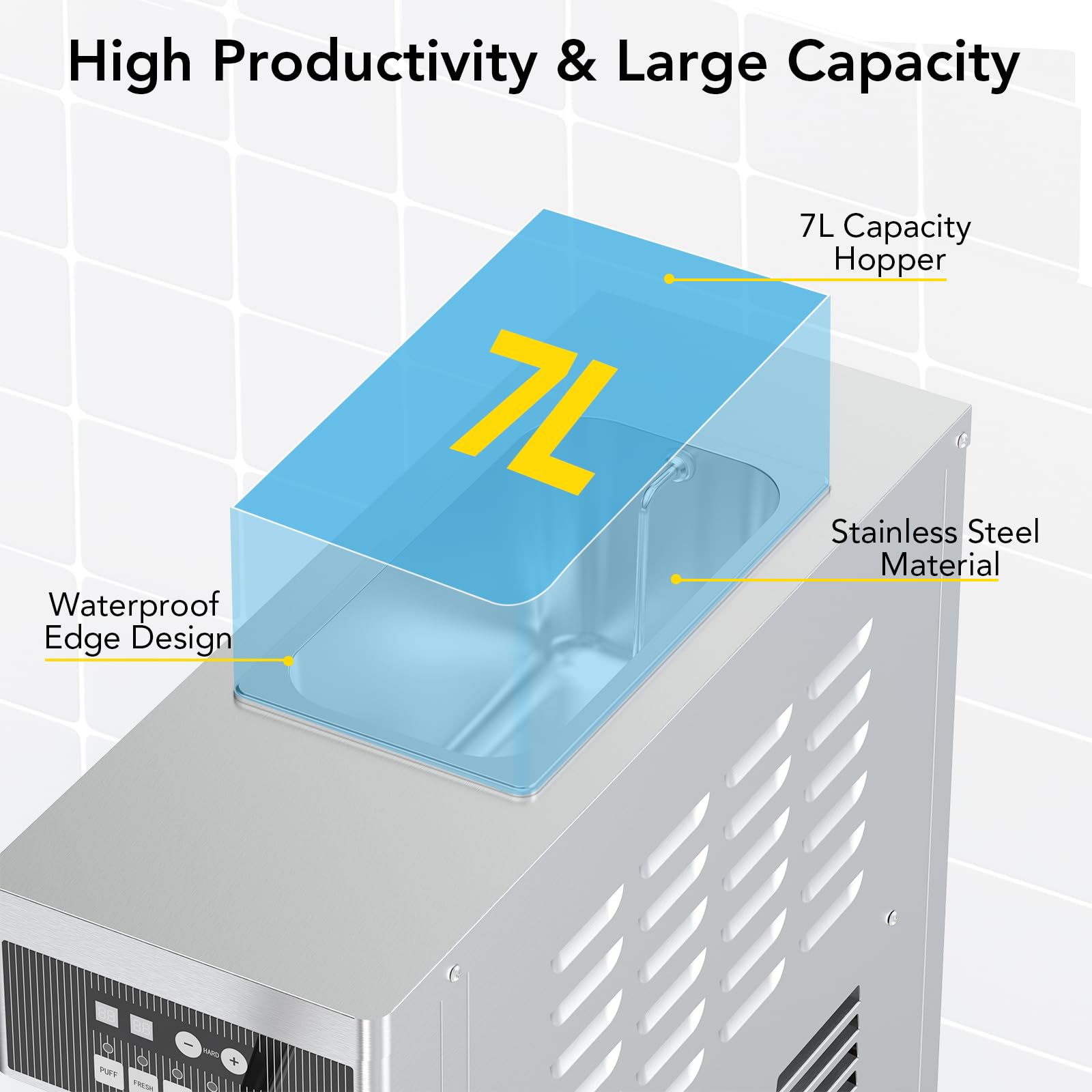Garvee Commercial Soft Serve Ice Cream Maker 1200W 7L Hopper, 5.8Gal/H Output for Restaurants, Food Trucks, Cafes & Parties (Sleek White, Easy-Clean)