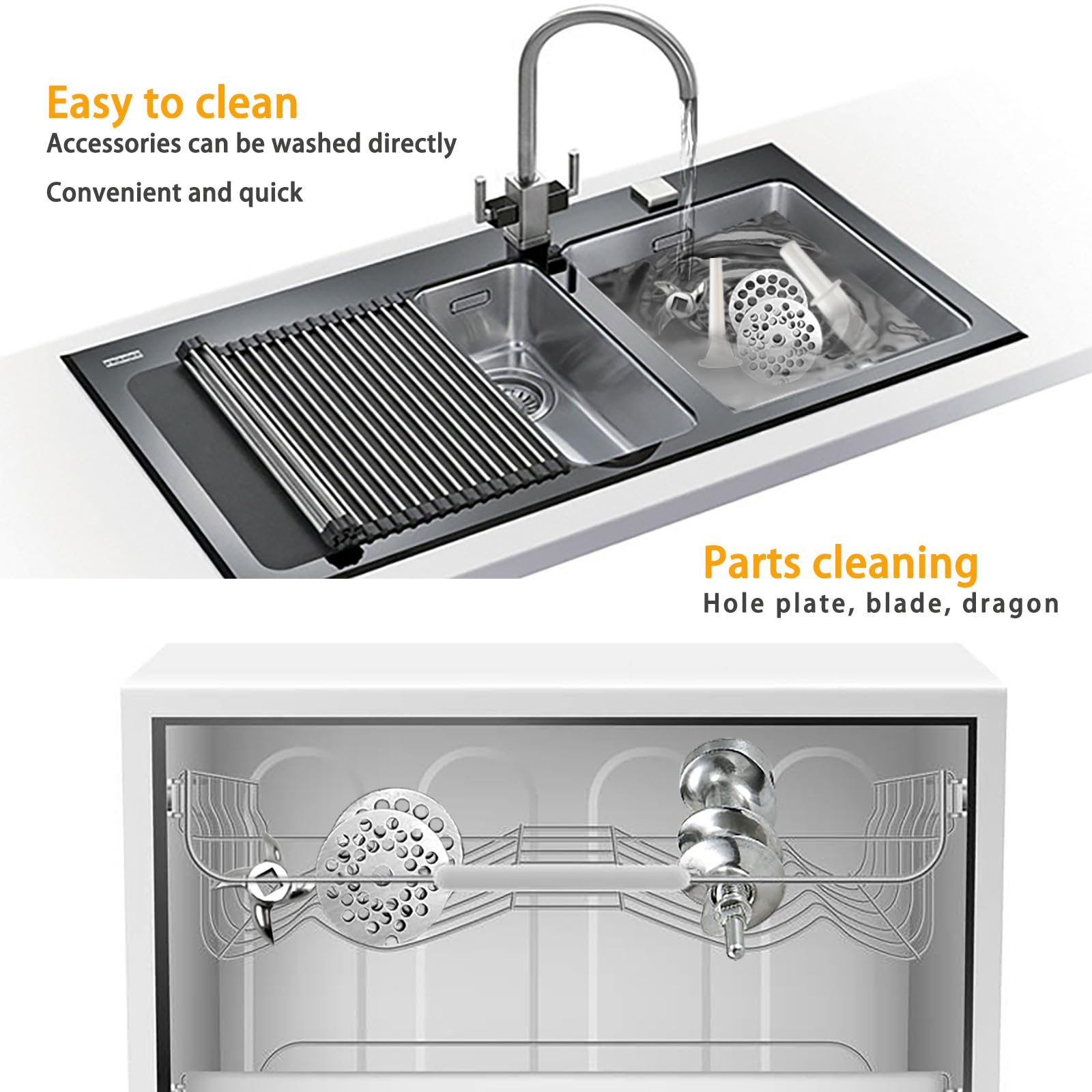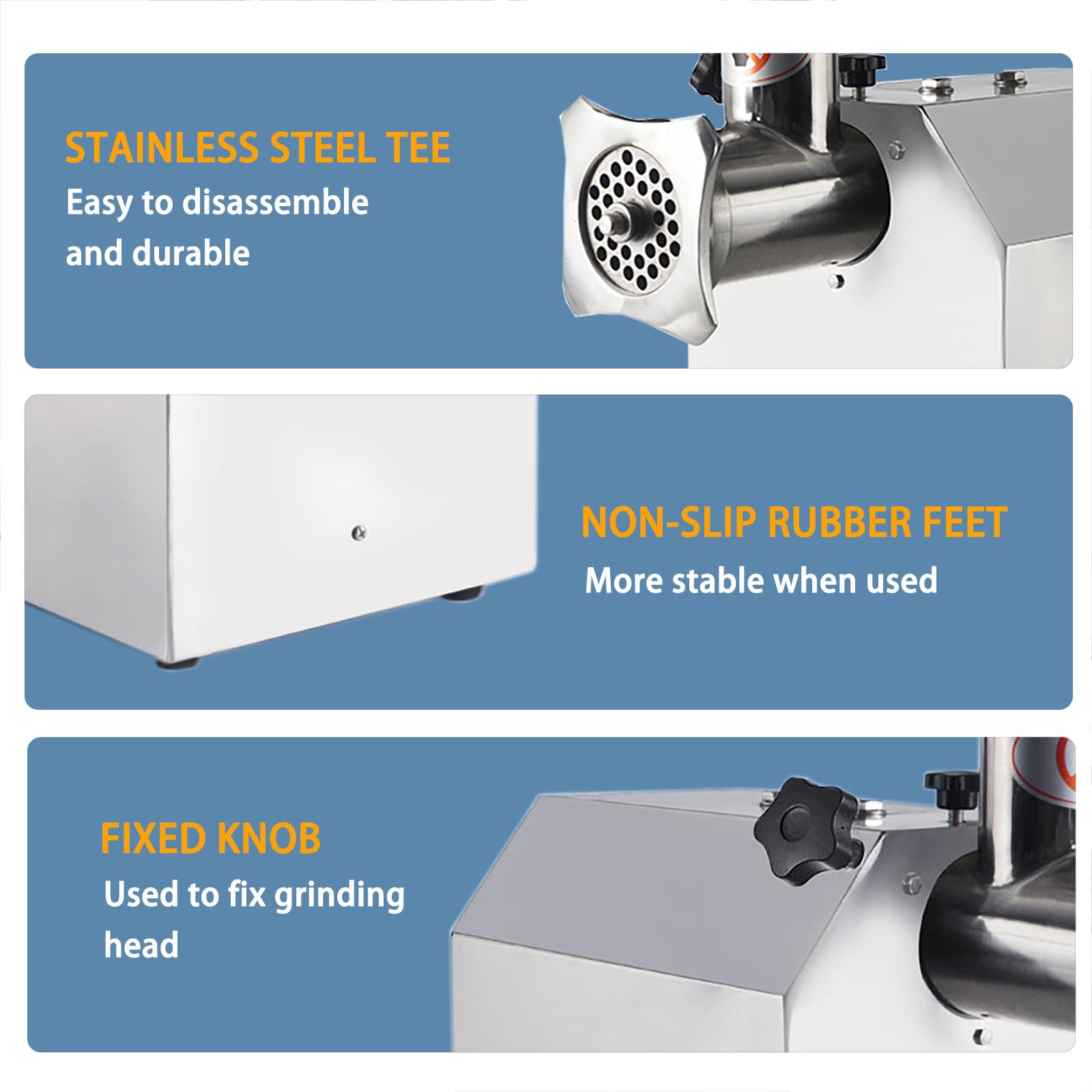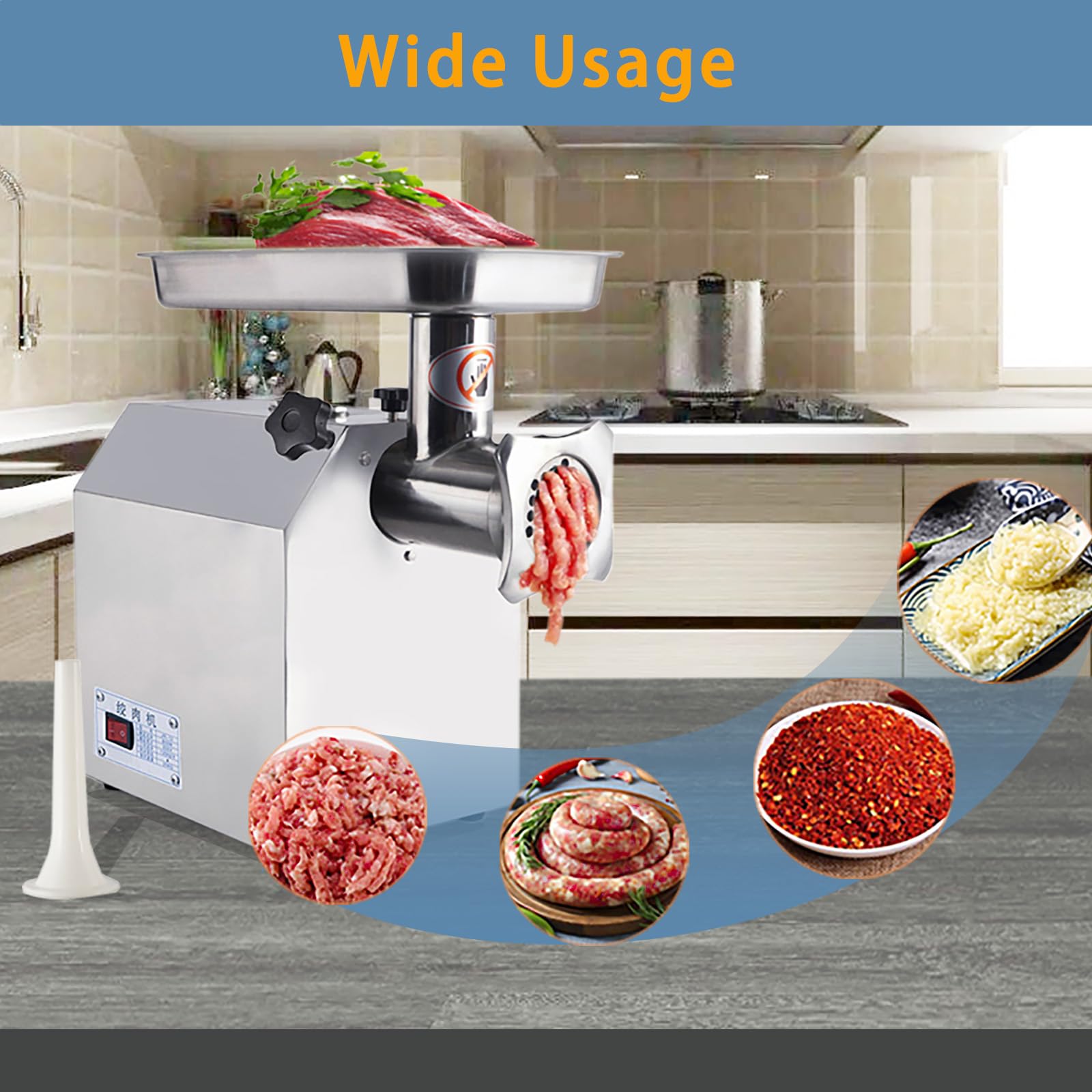 - Powerful Motor: Features a 1100W motor with copper wire, grinding up to 397 lbs/hour, saving time and energy for large-scale meat processing.
