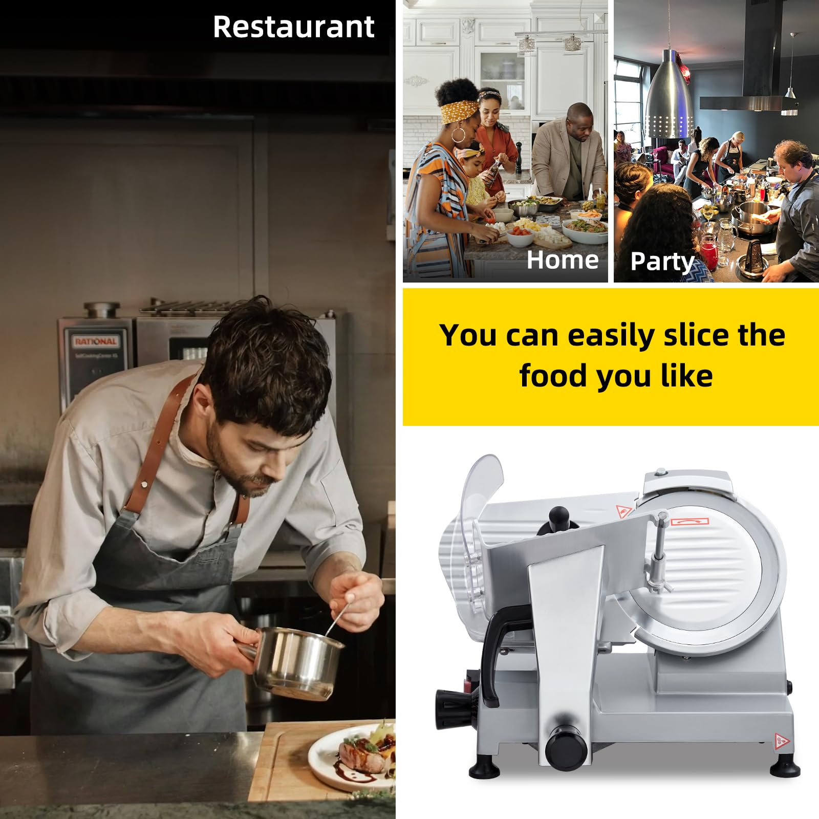 Garvee 10-Inch Commercial Deli Meat Slicer | 240W Semi-Automatic Electric Slicer for Meat, Cheese, Bread, and Vegetables | Adjustable Thickness and Easy to Clean
