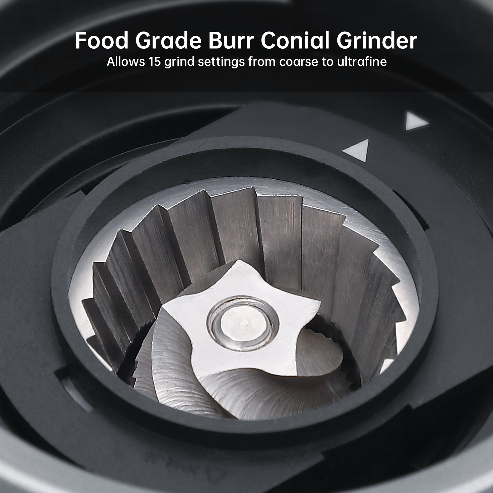 - Precise Grinding Control: 15 size options from coarse to ultra fine for perfect flavor extraction