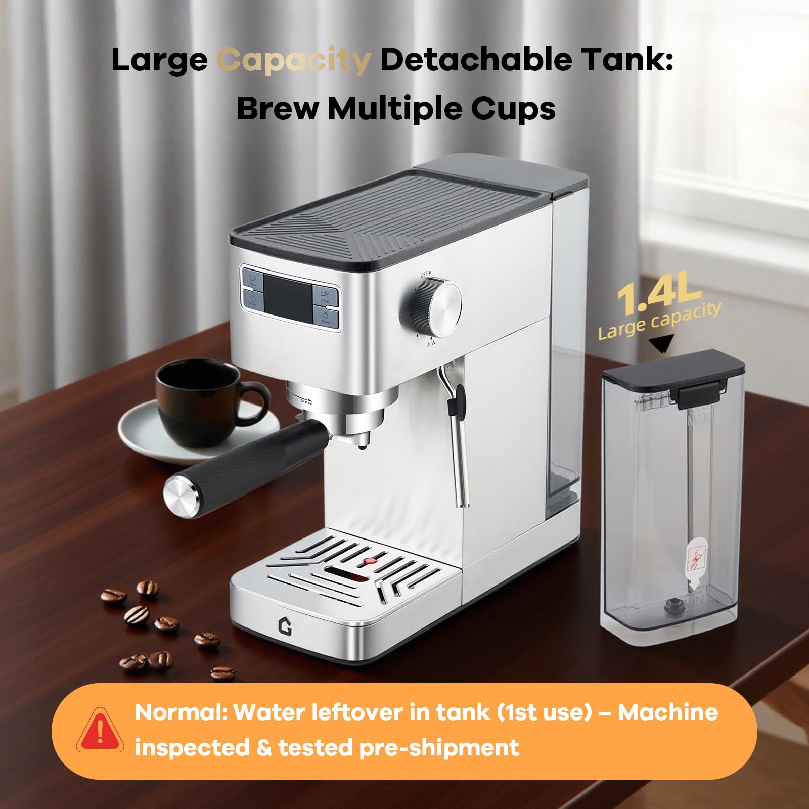 Garvee Compact 20 Bar Espresso Machine Stainless Steel, Steam Milk Frother, Removable Tank for Cappuccino/Latte,(Silver)