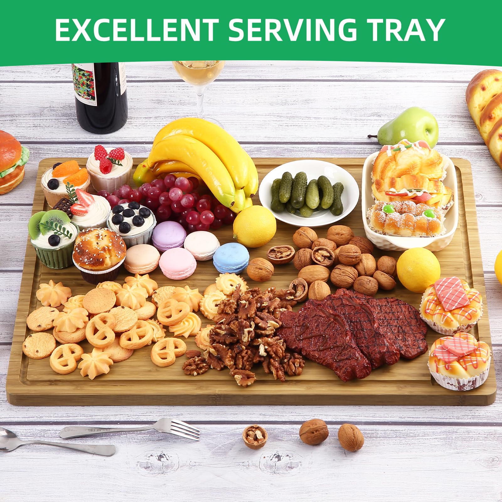 Garvee 24"x18" Large Cutting Board, Bamboo Wood Cutting Board for Kitchen with Handles and Juice Groove, Reversible Chopping Board for Meat, Cheese Board Charcuterie Serving Tray