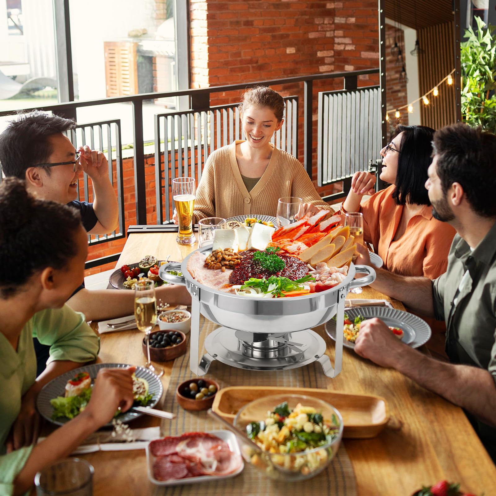 Garvee Chafing Dish Buffet Set 2 Pack 5QT, Stainless Steel Round Chafing Dishes for Buffet with Lid Holder & Glass Lid, Buffet Servers and Warmers for Parties, Wedding, Camping, Dinner, Silver