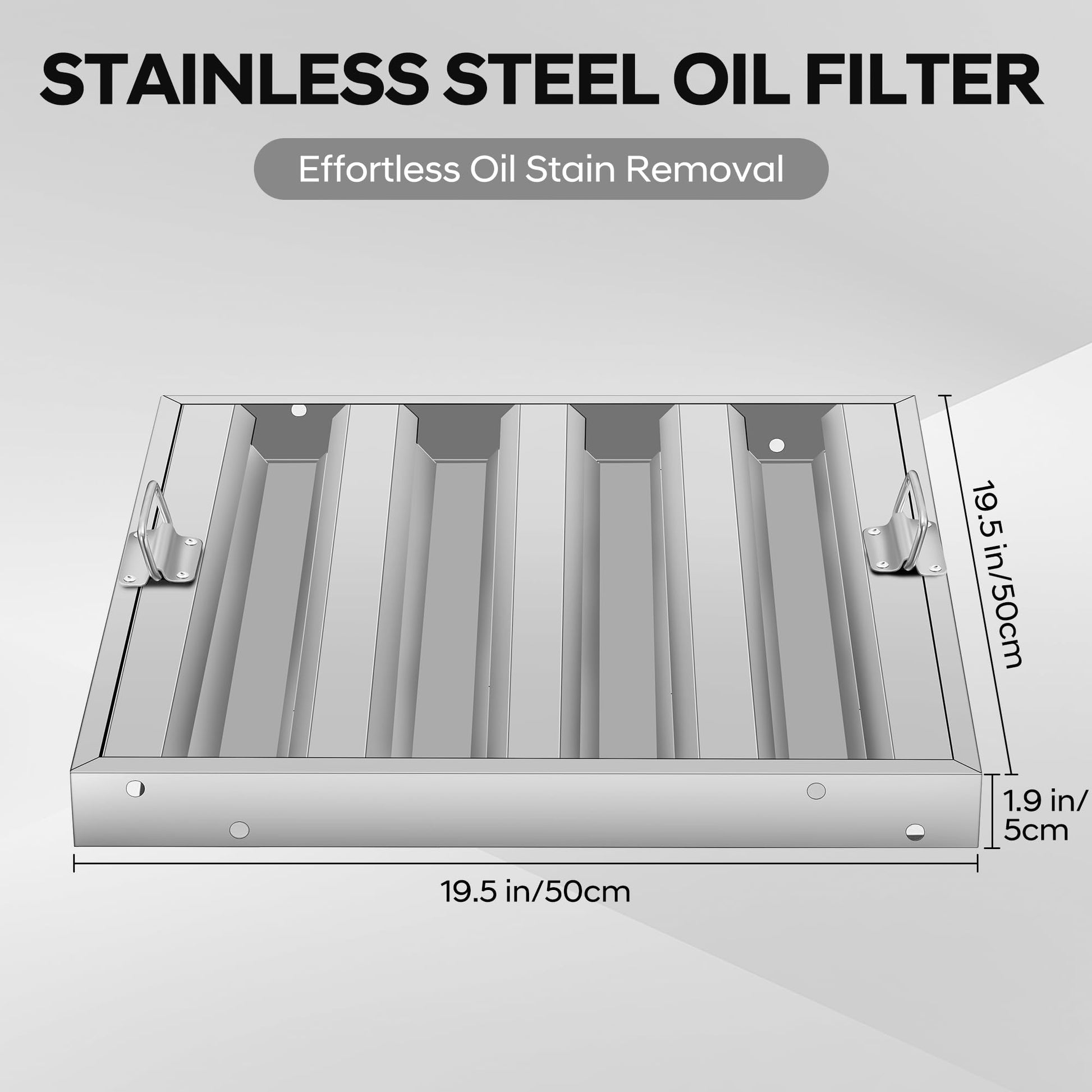 - Perfect Fit: Designed at 19.5 in x19.5 in, this stainless steel hood filter fits most commercial kitchen exhaust hoods with its 5-groove baffle design, enhancing grease capture and reducing fire hazards for safer restaurant environments