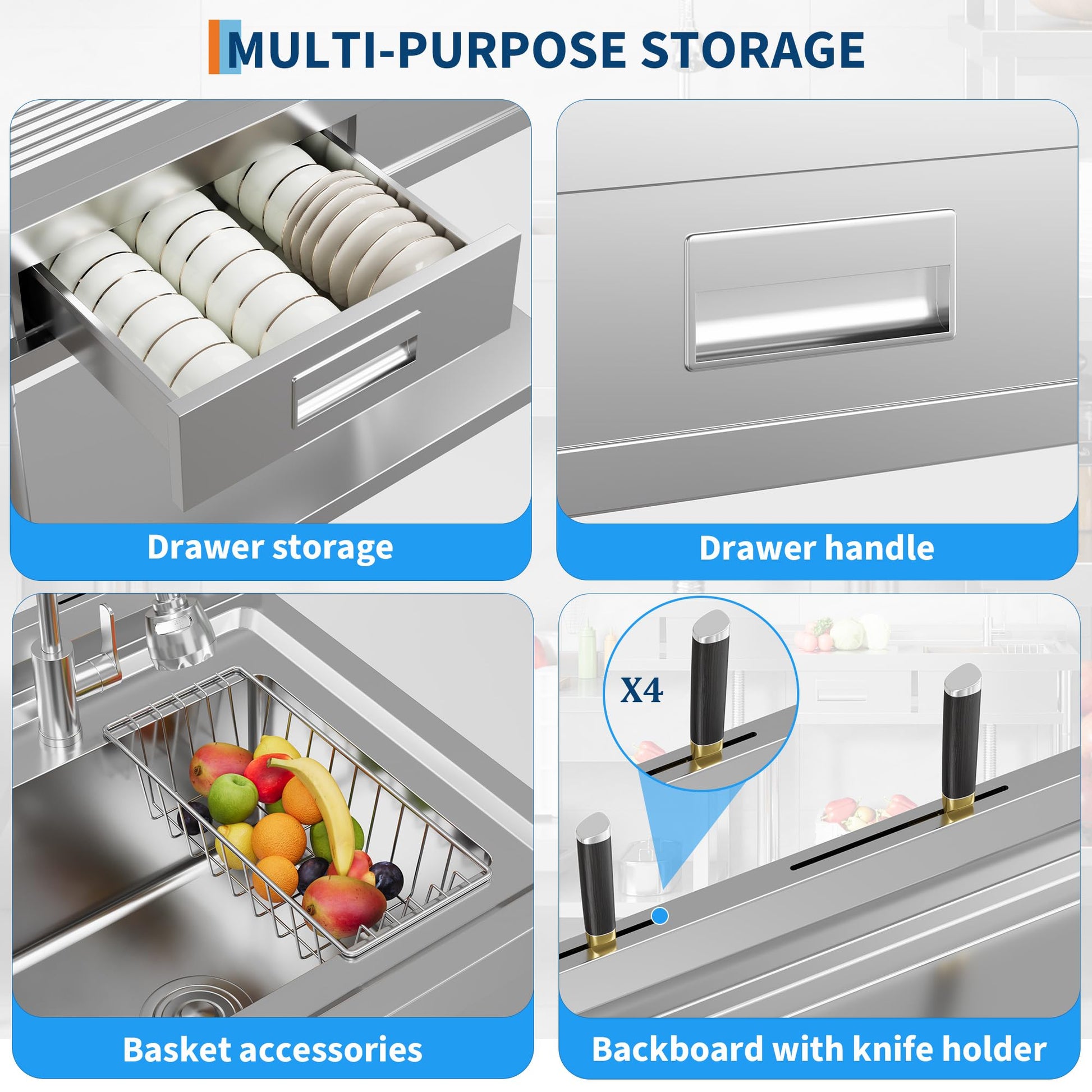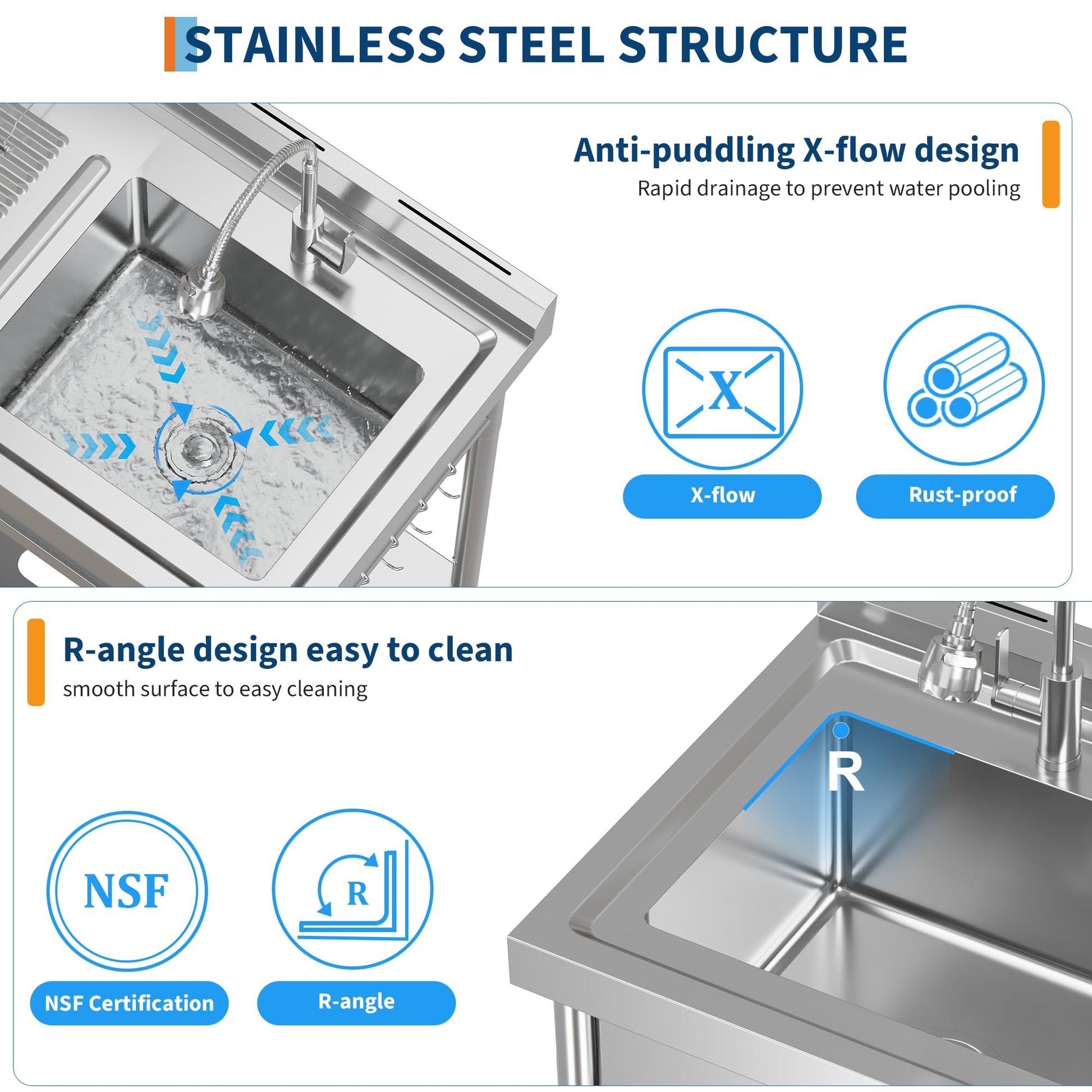 Garvee 20"D X 40"W X 39"H Stainless Steel Laundry Utility Sink, Freestanding Single Bowl Kitchen Sink with Hot & Cold Water Faucet, Built-In Wash Board, Drawer, Drain Basket, Dish Rack for Laundry Room, Garage, Durable Rust-Resistant
