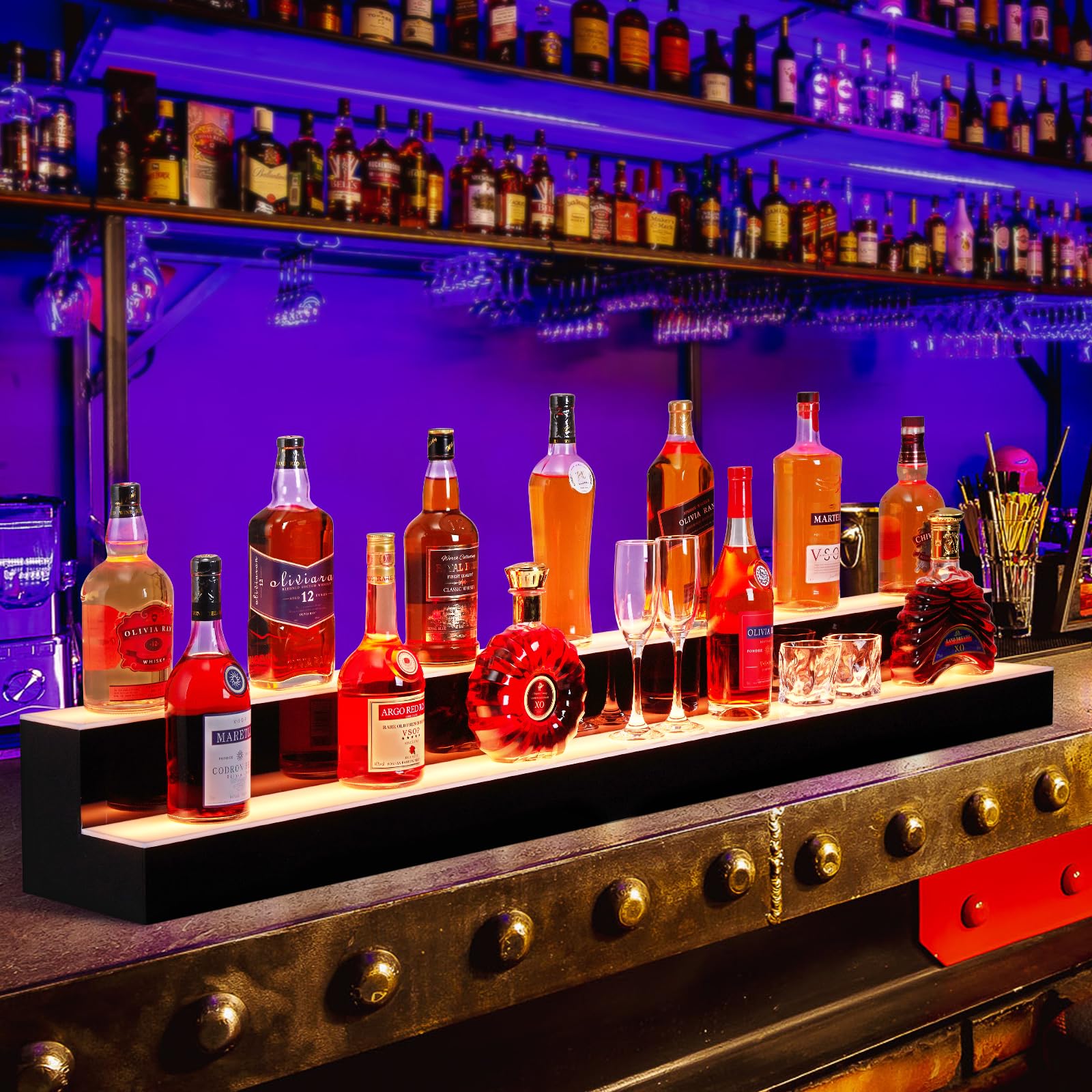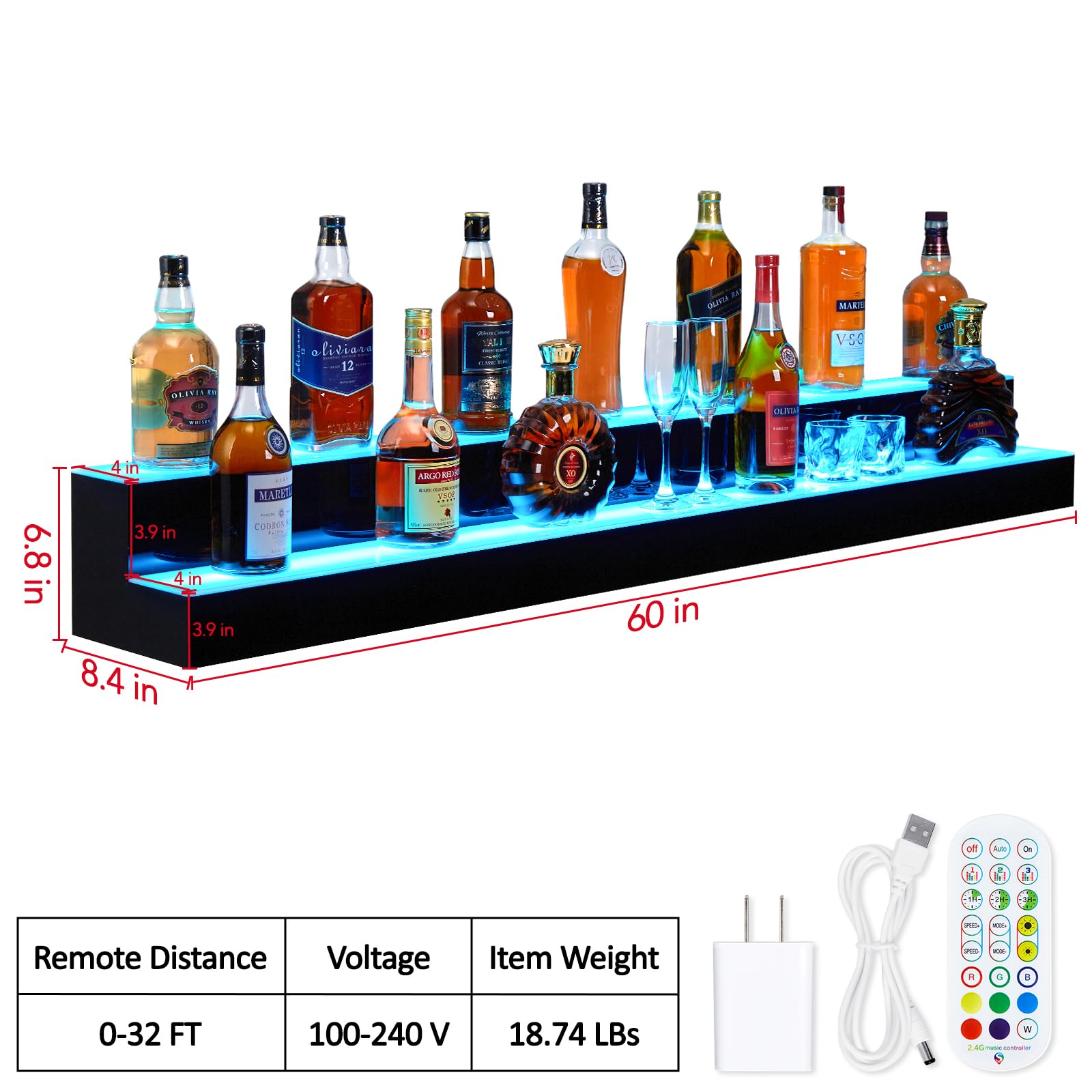 Transform your bar area into a captivating showcase with our state-of-the-art 60" LED Lighted Liquor Bottle Display Shelf. Perfect for home enthusiasts, professional establishments, and anyone looking to add a touch of elegance to their space.