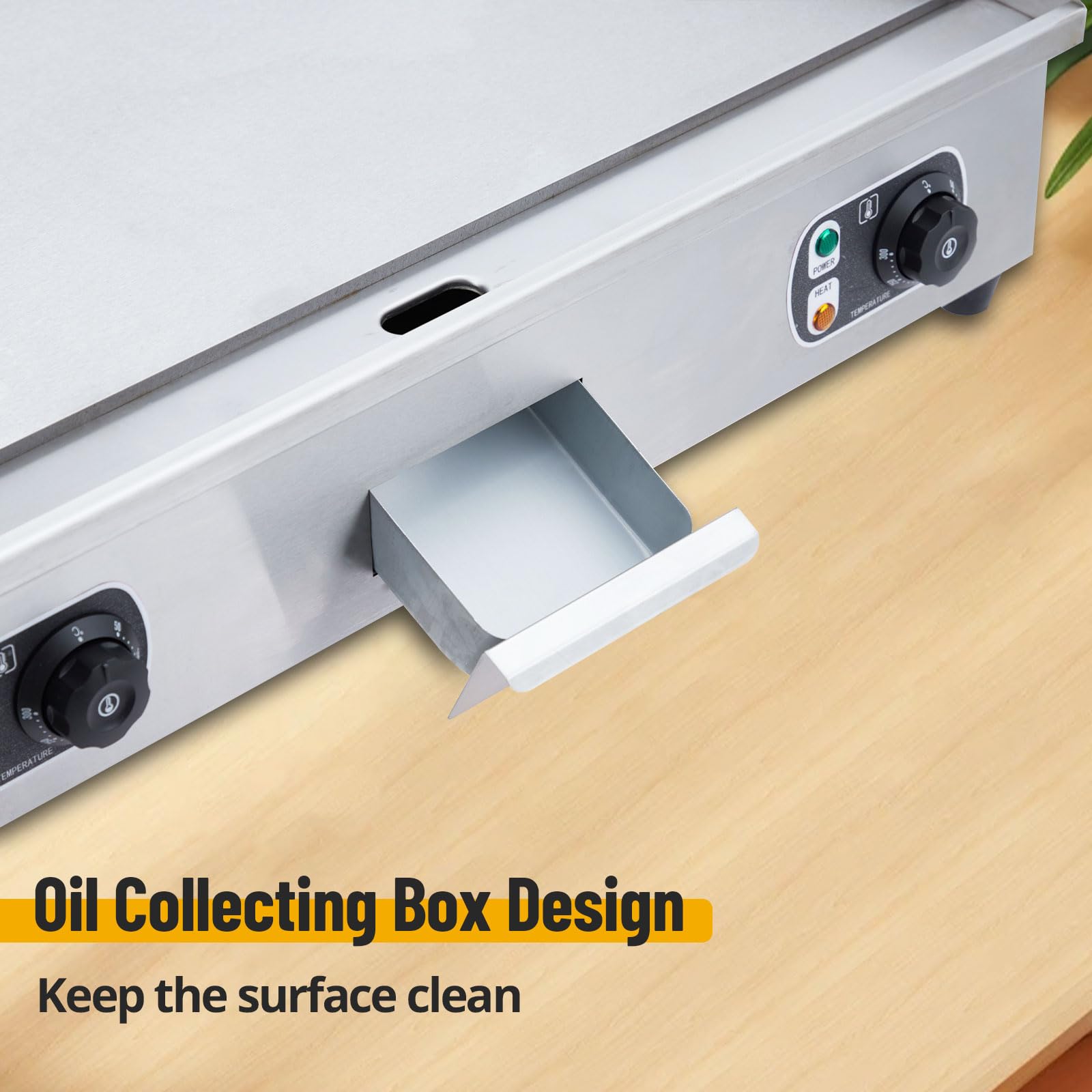 Our 3000W powerhouse delivers rapid, even heating across the spacious 28.7" x 18.9" cooking surface. The 8mm thick stainless steel construction ensures durability and easy cleaning, making it ideal for high-volume cooking in both commercial and home environments.