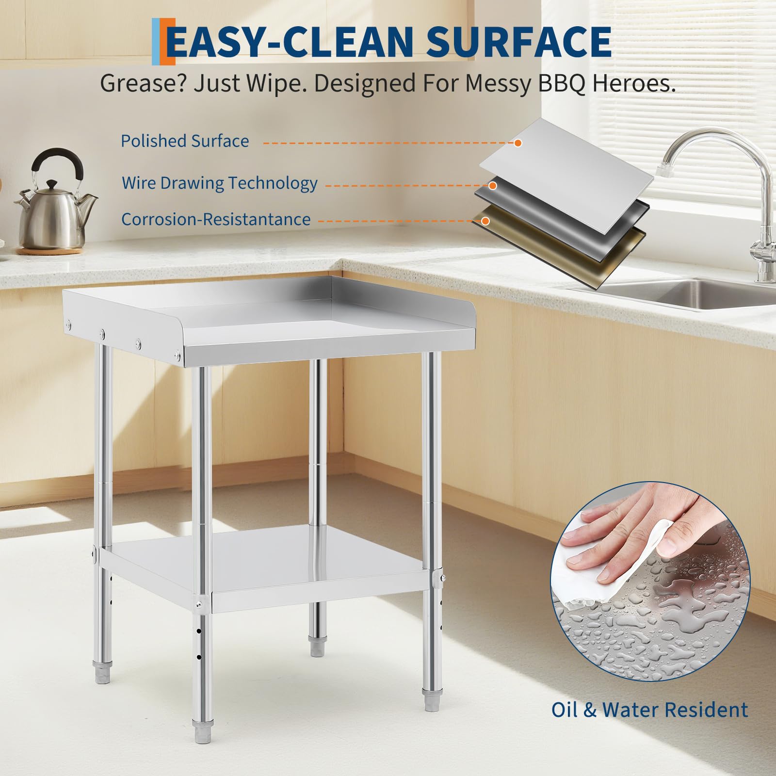 Garvee 48"L x 30"W x 30"H Stainless Steel Grill Stand Table NSF Certified, 400 lbs Capacity, Adjustable Legs, Removable Safety Baffle, Waterproof Tape, Commercial & Home Use