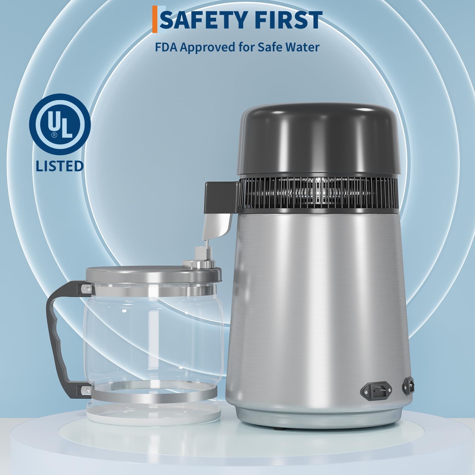 Garvee 4L Distilled Water Maker 750W Stainless Steel Home Countertop Water Distiller Pure Water