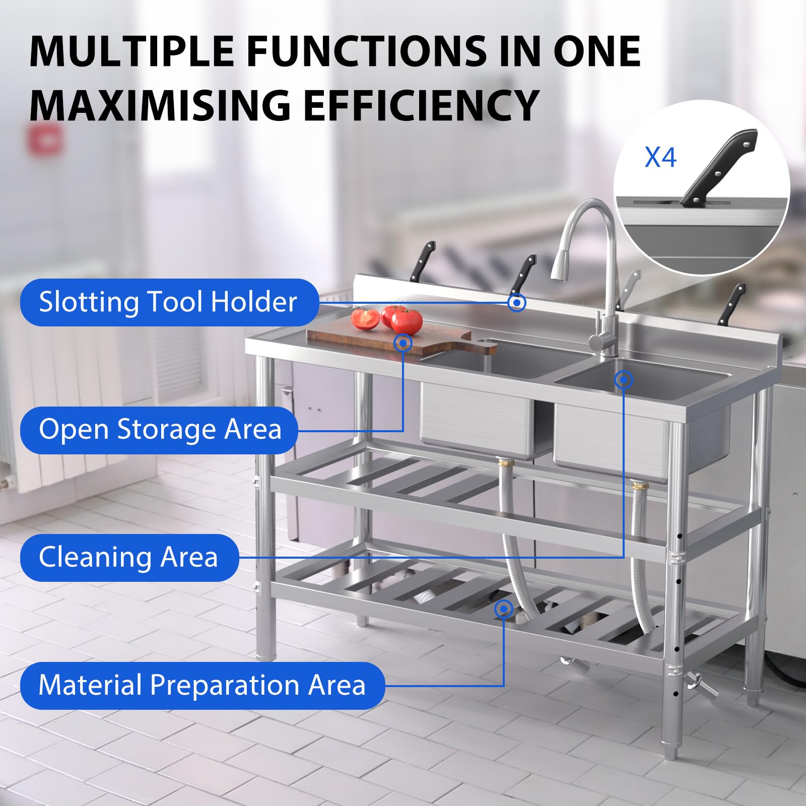 Elevate your kitchen or commercial space with our premium free-standing stainless steel sink. Engineered for durability and functionality, it's the perfect solution for restaurants, garages, and professional kitchens.